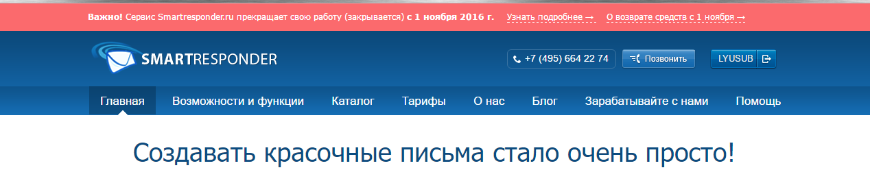 Недавно мы были шокированы новостью о том, что Смартреспондер с 1 ноября 2016 года заканчивает свою работу. Вот и сейчас на сайте SmartPesponder объявление о закрытии сервиса.