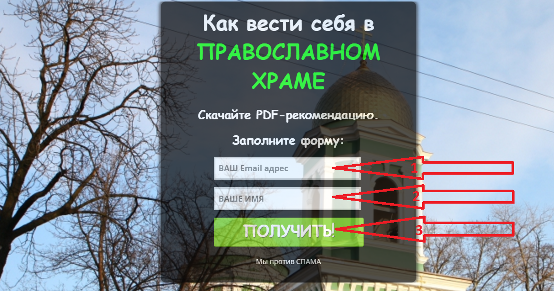 Для примера мы рассмотрим получение PDF-рекомендации "Как вести себя в православном храме, что предлагается на сайте моей клиентки Натали Пановой "ГАМАЮН - изменение судьбы"