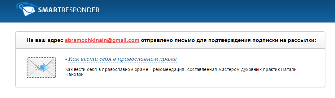 Не более чем через одну - три минуты (практически моментально) к вам на почту придет письмо "Как вести себя в православном храме" с ссылкой на скачивание или просмотр документа. Ниже я предоставила образец письма: