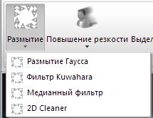 - Размытие (размытие Гаусса, размытие Кувахары, медианный фильтр, 2D cleaner):