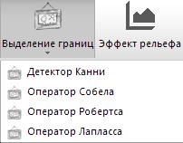 - Контуры (детектор Канни, оператор Собела, фильтр Робертса, фильтр Лапласcа):